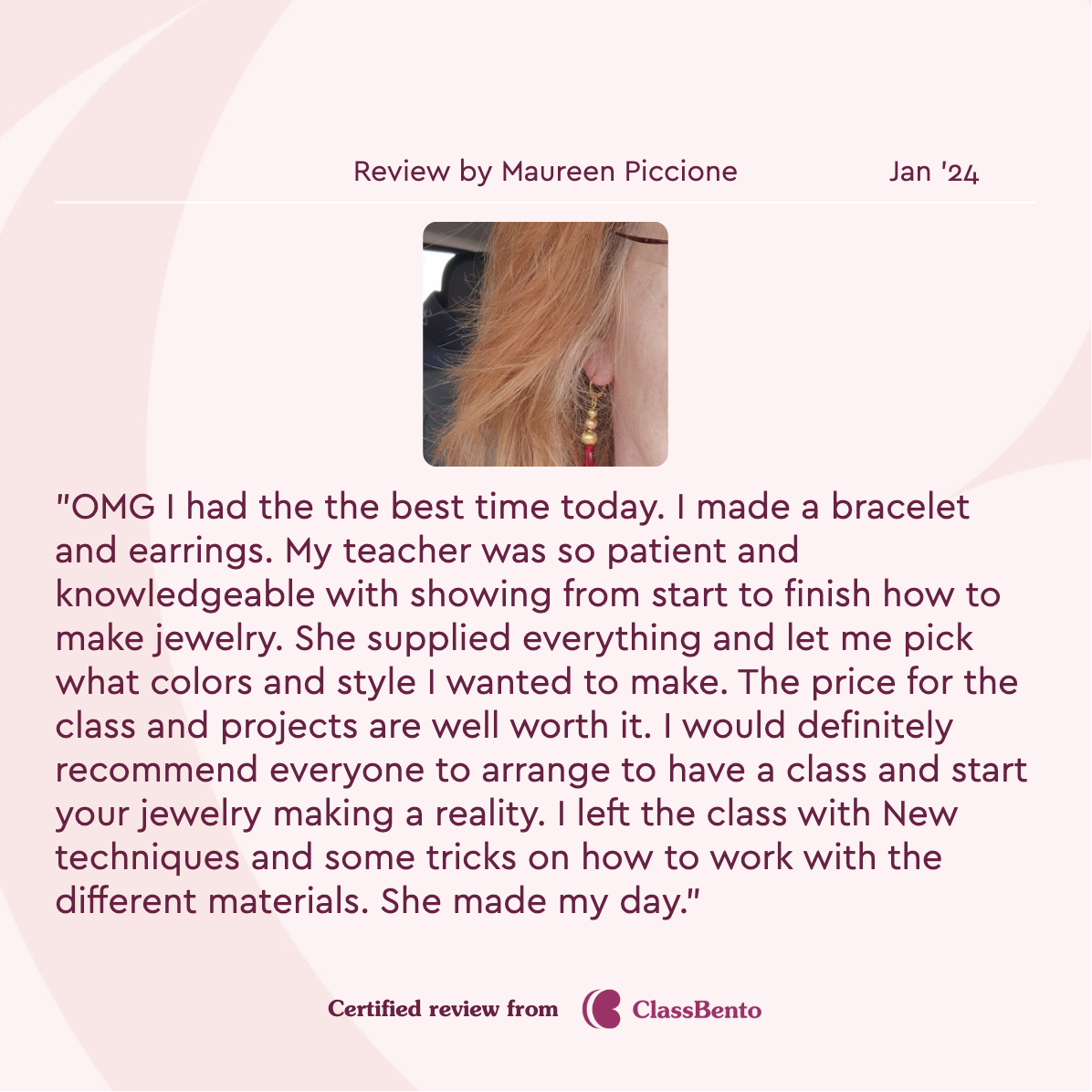 Unleash Your Inner Artisan! Join our sparkling jewelry making classes and discover the joy of creating your own pieces. We offer flexible Jewelry class packages, including 1-Class, 6-Class, and 10-Class options—perfect for beginners and experienced makers alike.