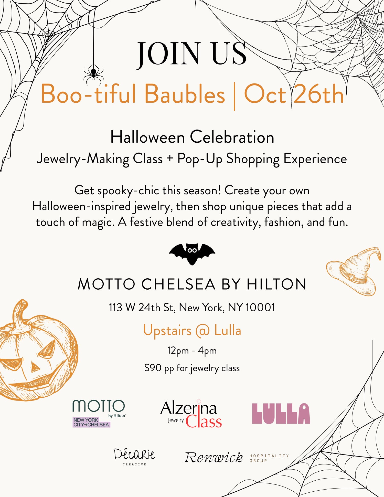 Get ready for a spooky-chic celebration of creativity and style! Join us for Boo-tiful Baubles, a special Halloween jewelry-making experience where you’ll design your own festive, one-of-a-kind pieces inspired by the magic of the season.
