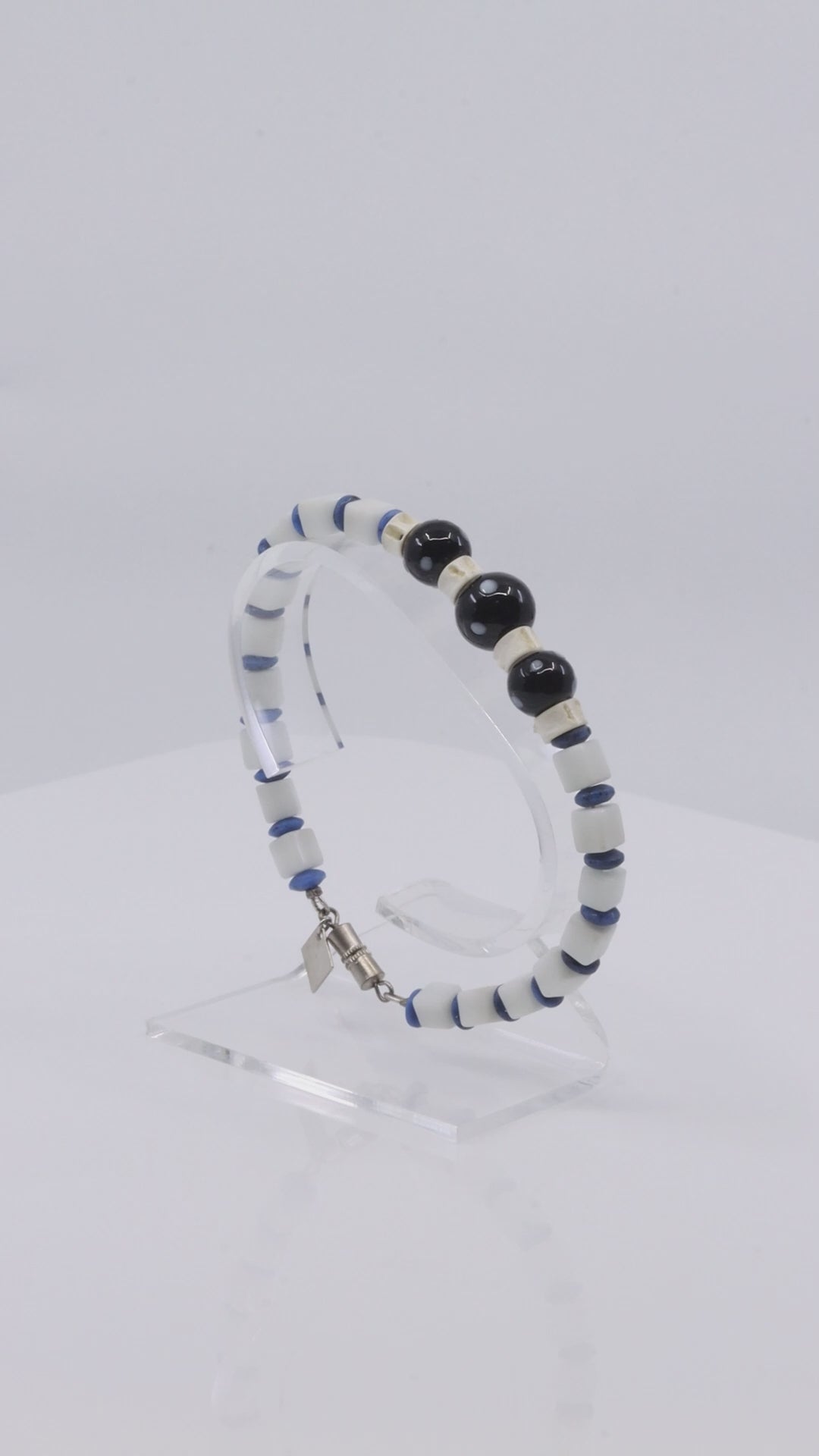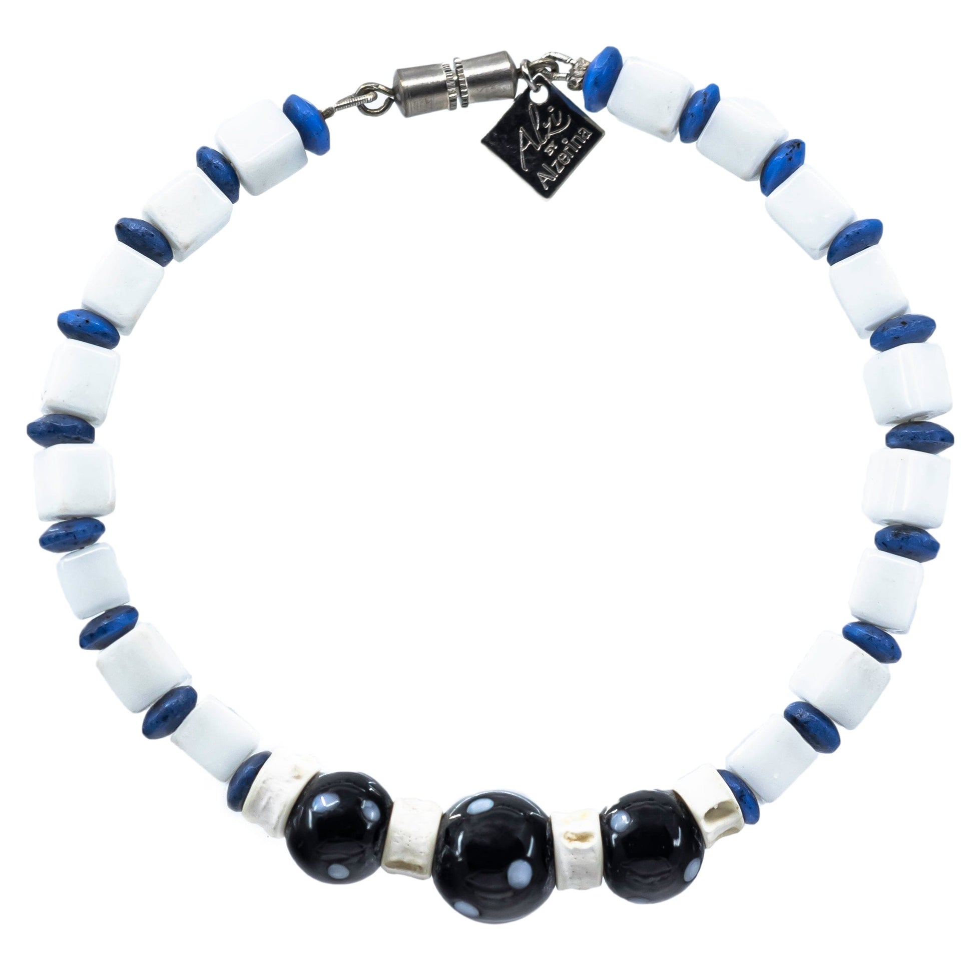Crafted with a fusion of white, blue, and Conta Di Ojo beads, it exudes a charismatic charm that sets it apart from any other piece. The Amadeu Bracelet is perfect for those looking to add a distinctive, handcrafted touch to their collection, making it a must-have for any fashion-forward individual.