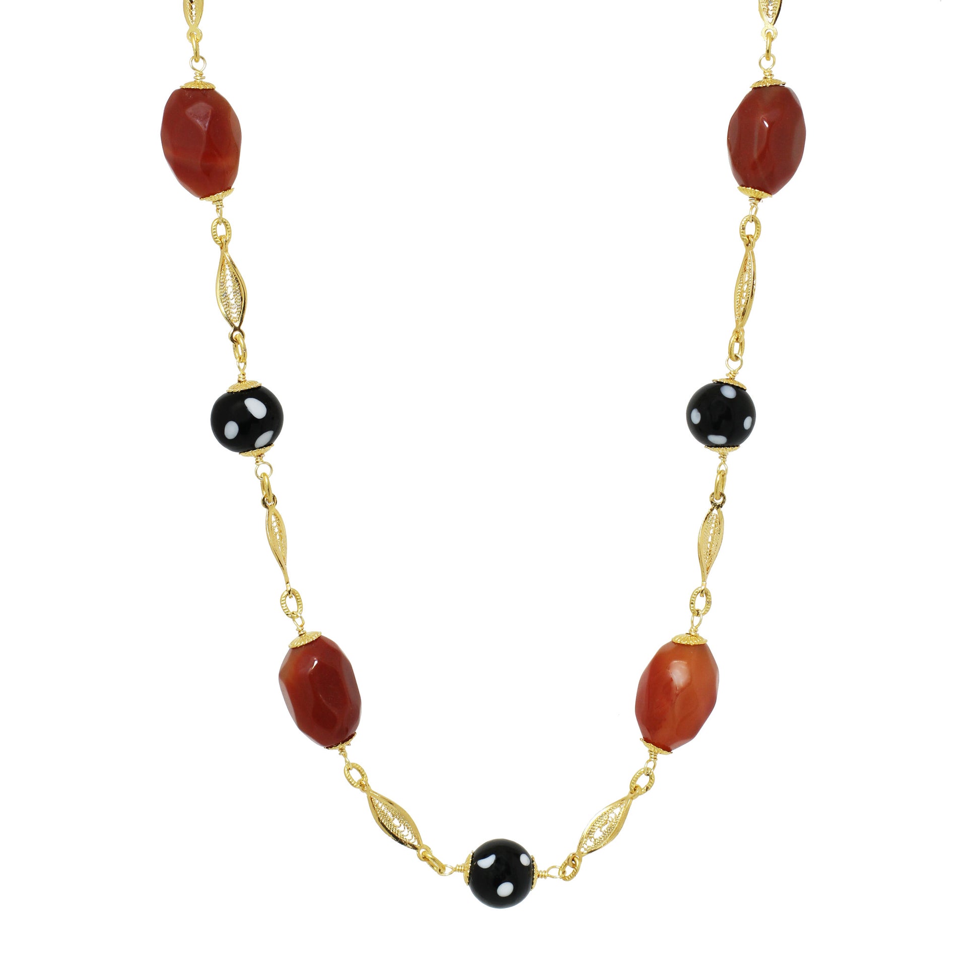 The Amorzinha Necklace is a one-of-a-kind adornment, meticulously crafted with a harmonious blend of brown and Conta Di Ojo beads. Each bead is believed to bring luck into your life, making this necklace not only a stylish accessory but also a symbolic charm for good fortune.