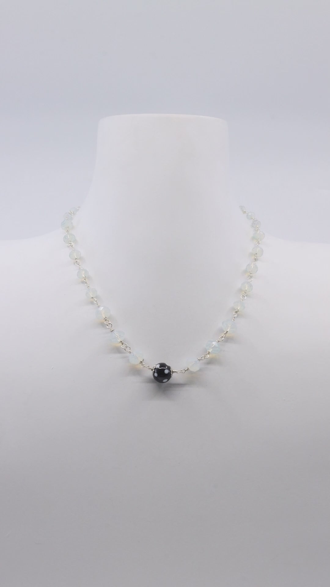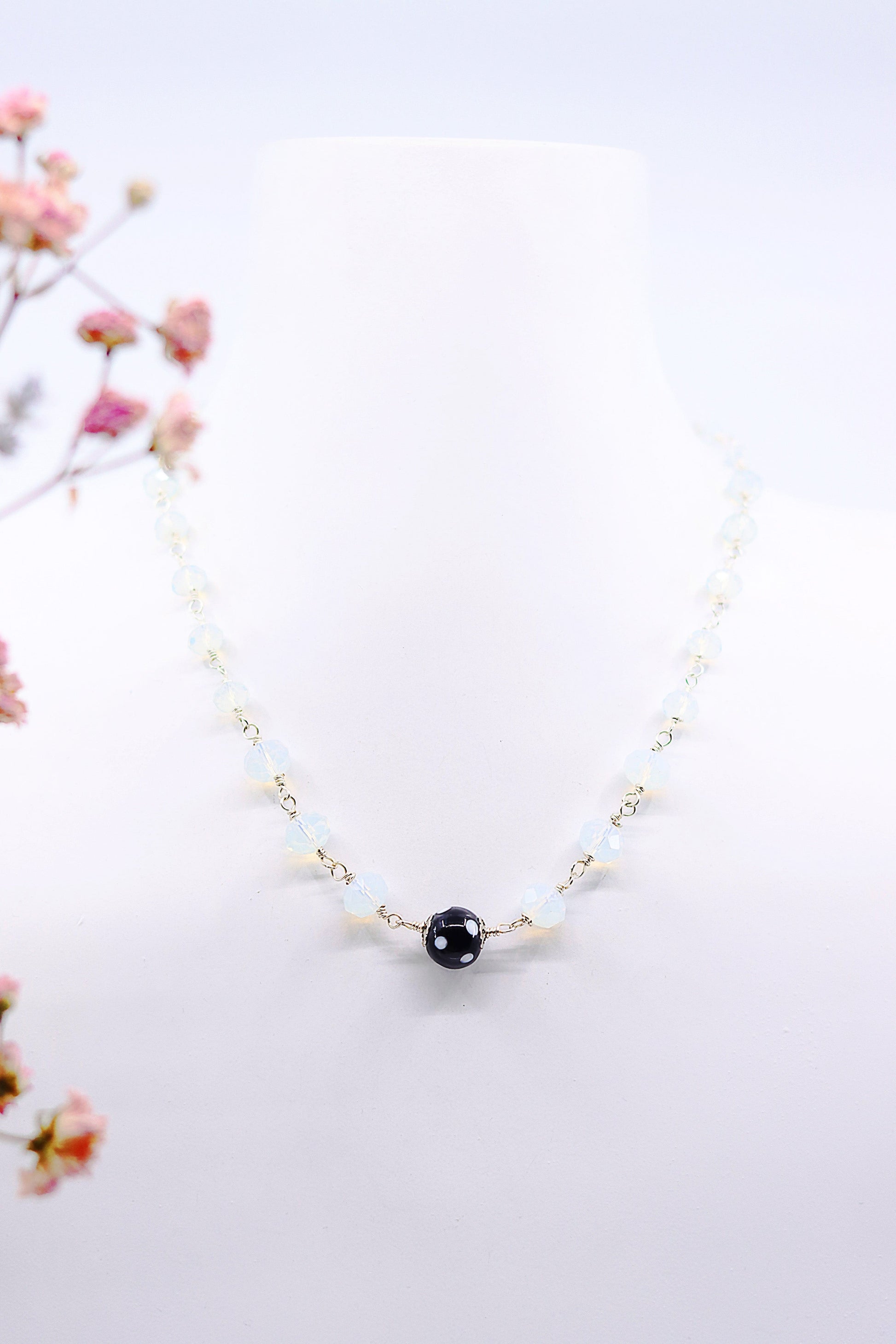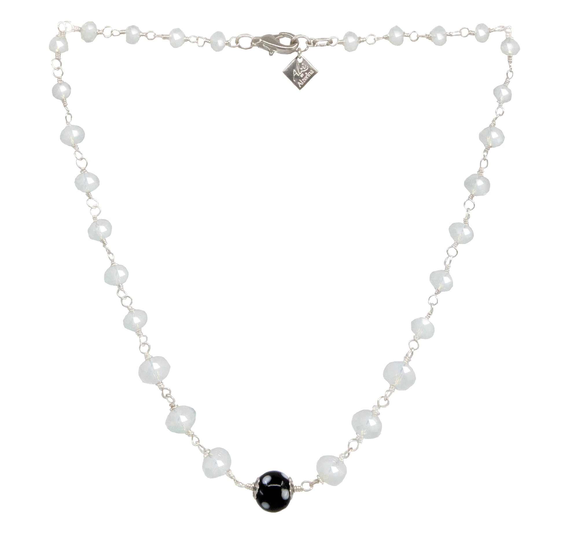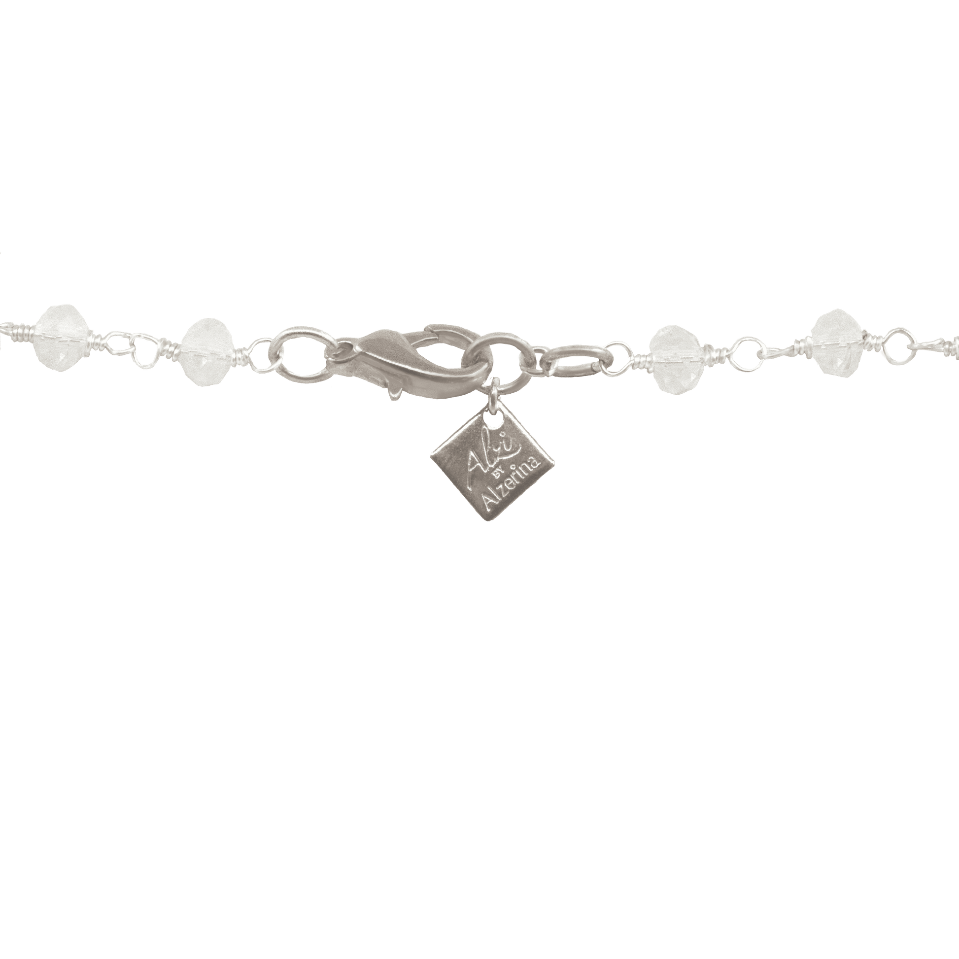 The Angel Necklace is crafted with delicate clear gems and a sleek silver chain, symbolizing the divine beauty and innocent nature that women possess. Adorned with a Conta Di Ojo bead centerpiece designed to bring luck to whoever wears it. This timeless piece is a must-have in your closet, as its versatile design allows it to be styled with many different looks, from casual to formal.