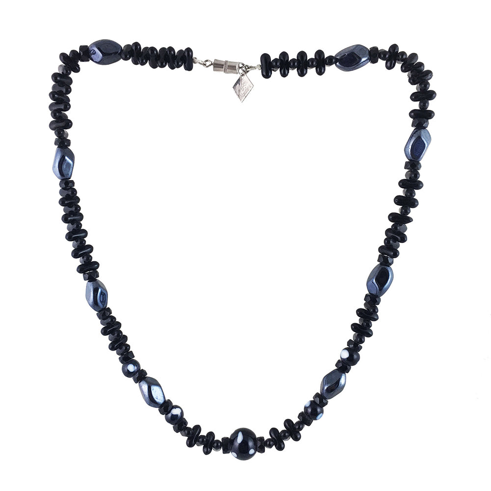With its easy screw clasp and crafted metallic geometric beads accented with Black Onyx beading, this 16-inch necklace effortlessly transitions from casual to formal, ensuring you stand out with every wear.