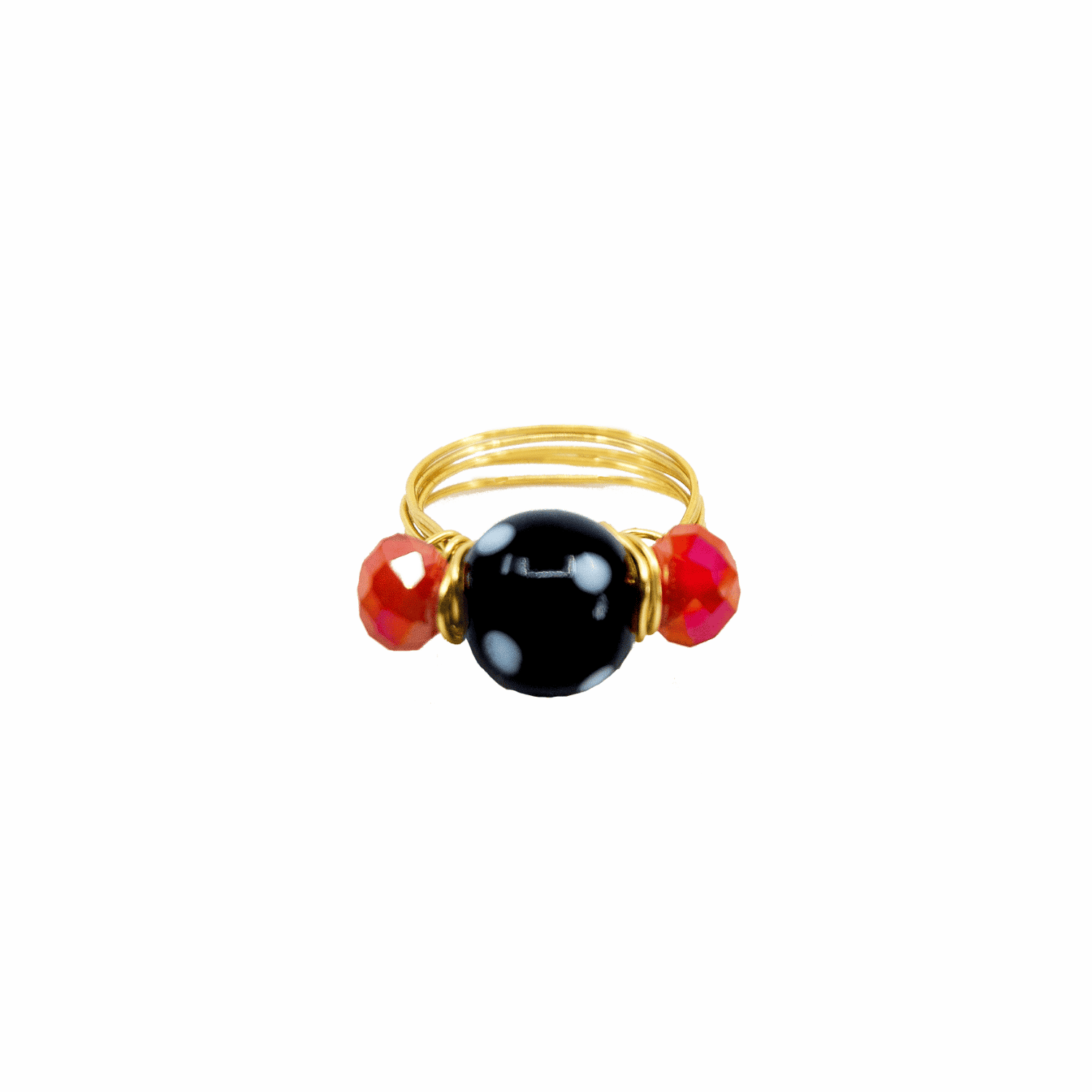 The Feminista Ring is crafted using coral Austrian crystals and a black Conta Di Ojo bead. This stunning piece is made for women who stick by each other and stand united together.