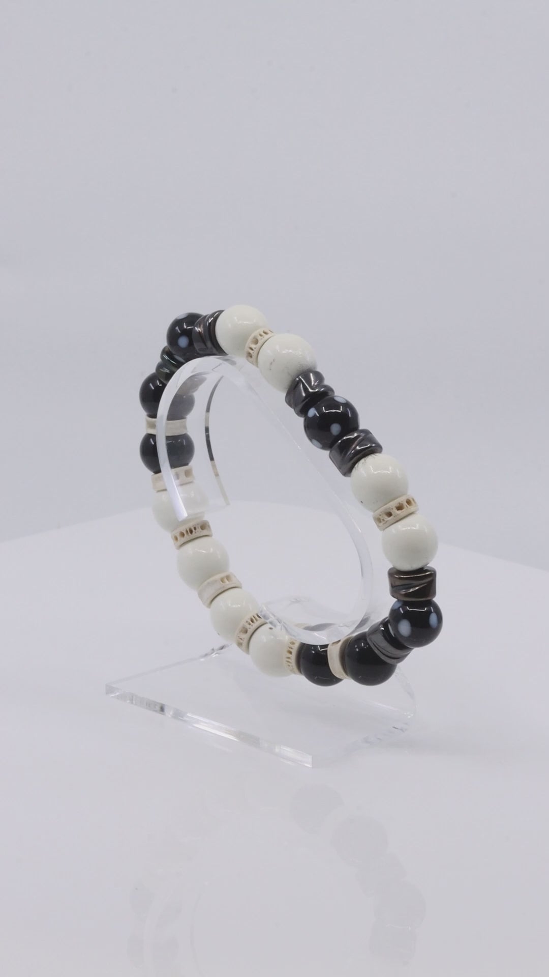 Let the Jil Bracelet bring you positive energy and confidence. Crafted with Konta D'oju beads and complemented by a mix of white and black beads, this piece exudes a balanced, stylish charm. Its unique combination of colors makes it a versatile accessory, perfect for enhancing any outfit while embodying both elegance and empowerment.