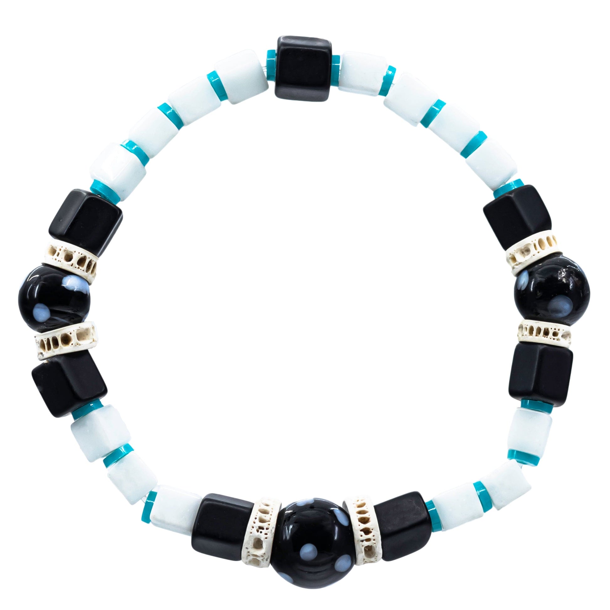 Elevate your personal style with the Kau Bracelet. Crafted with a striking combination of white and black Konta D'oju beads, along with fish bone embellishments, this bracelet exudes confidence and positivity.