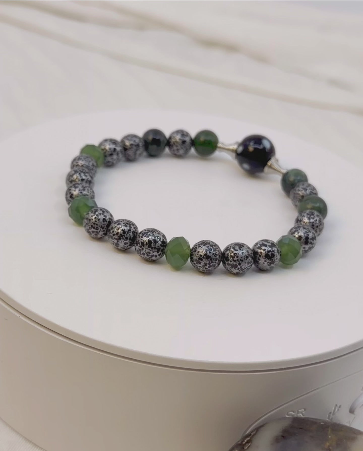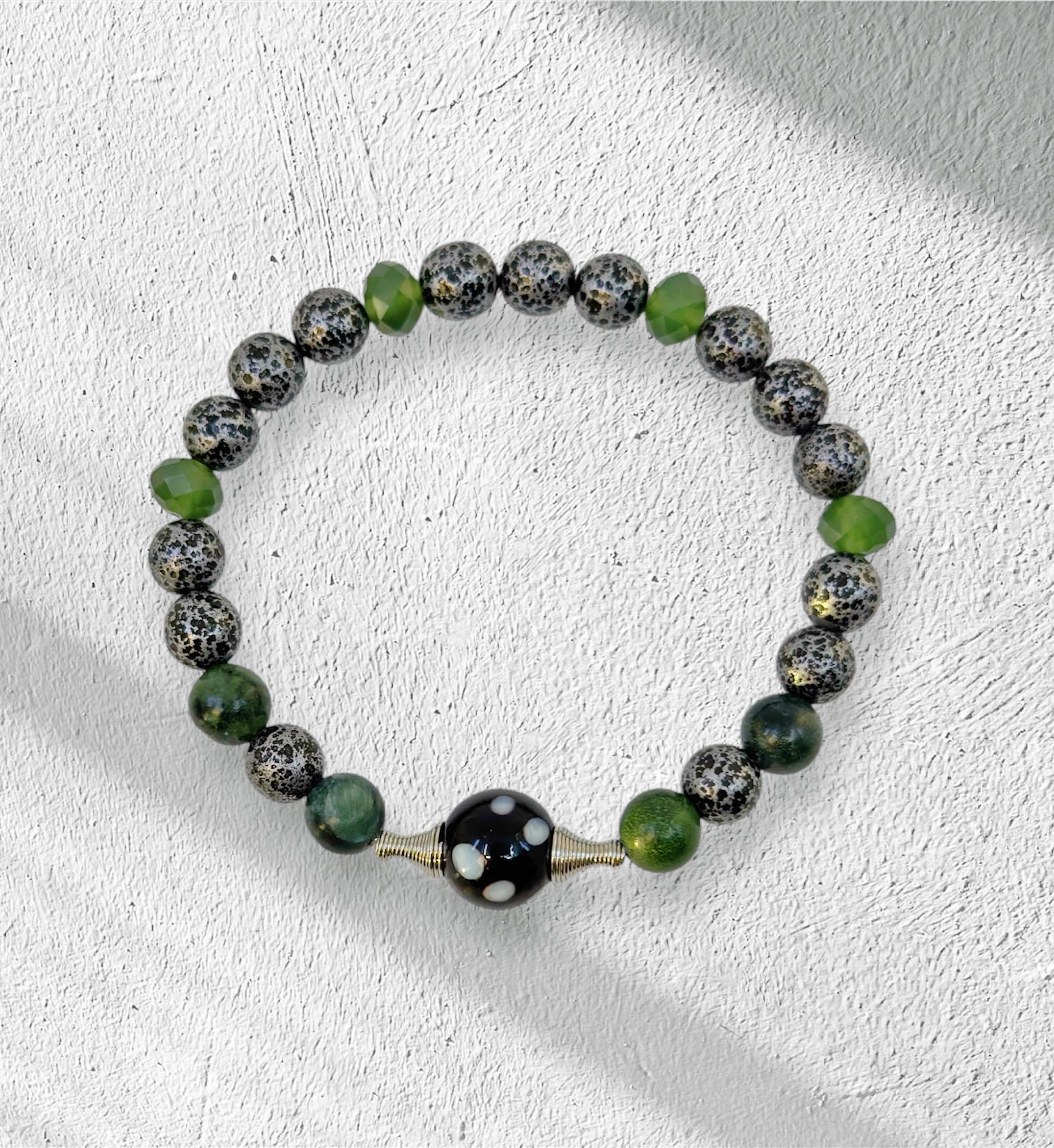 The Manuel bracelet is a stylish and meaningful accessory that can help you feel more positive and confident. Made with Konta D'oju bead, jades and mysterious black beads.