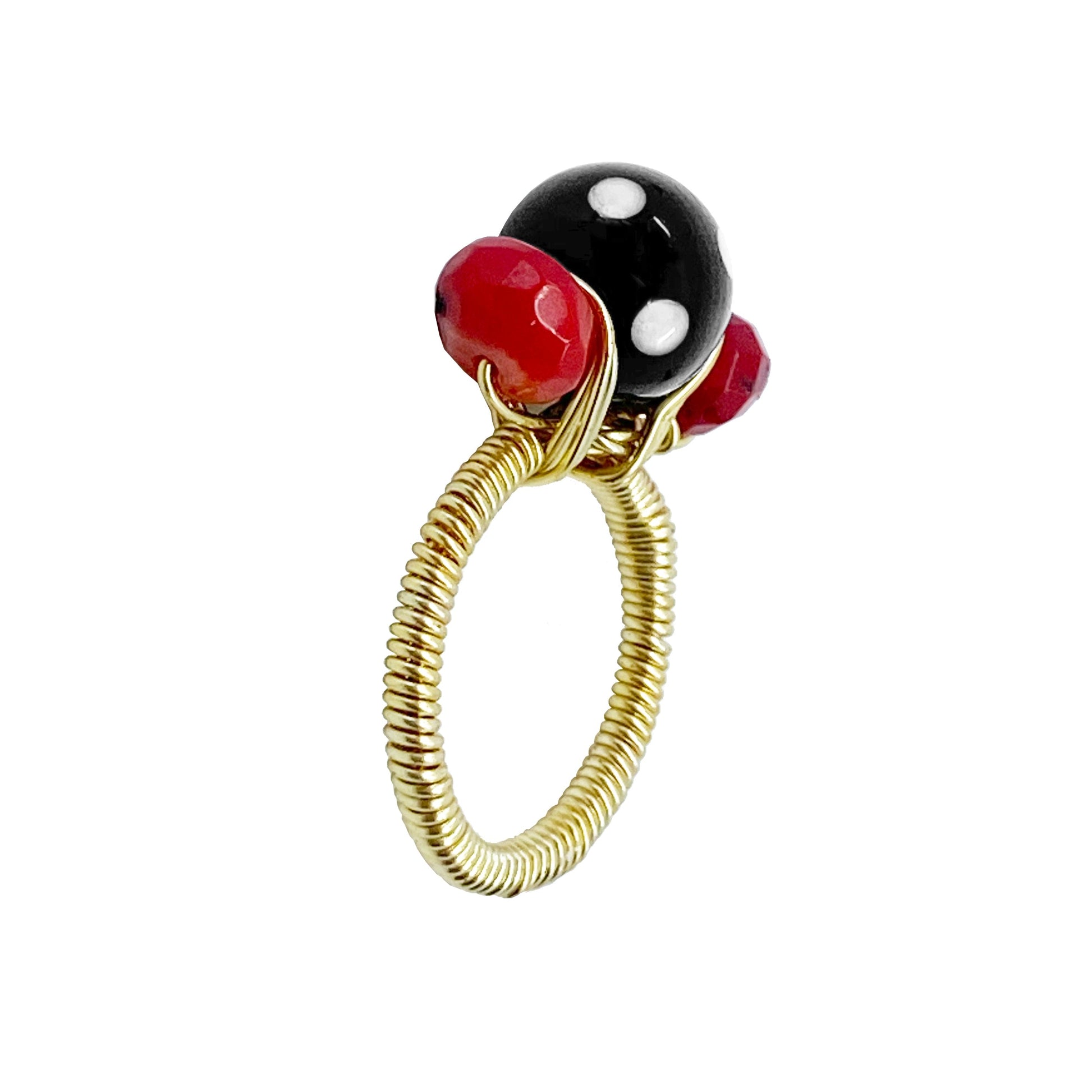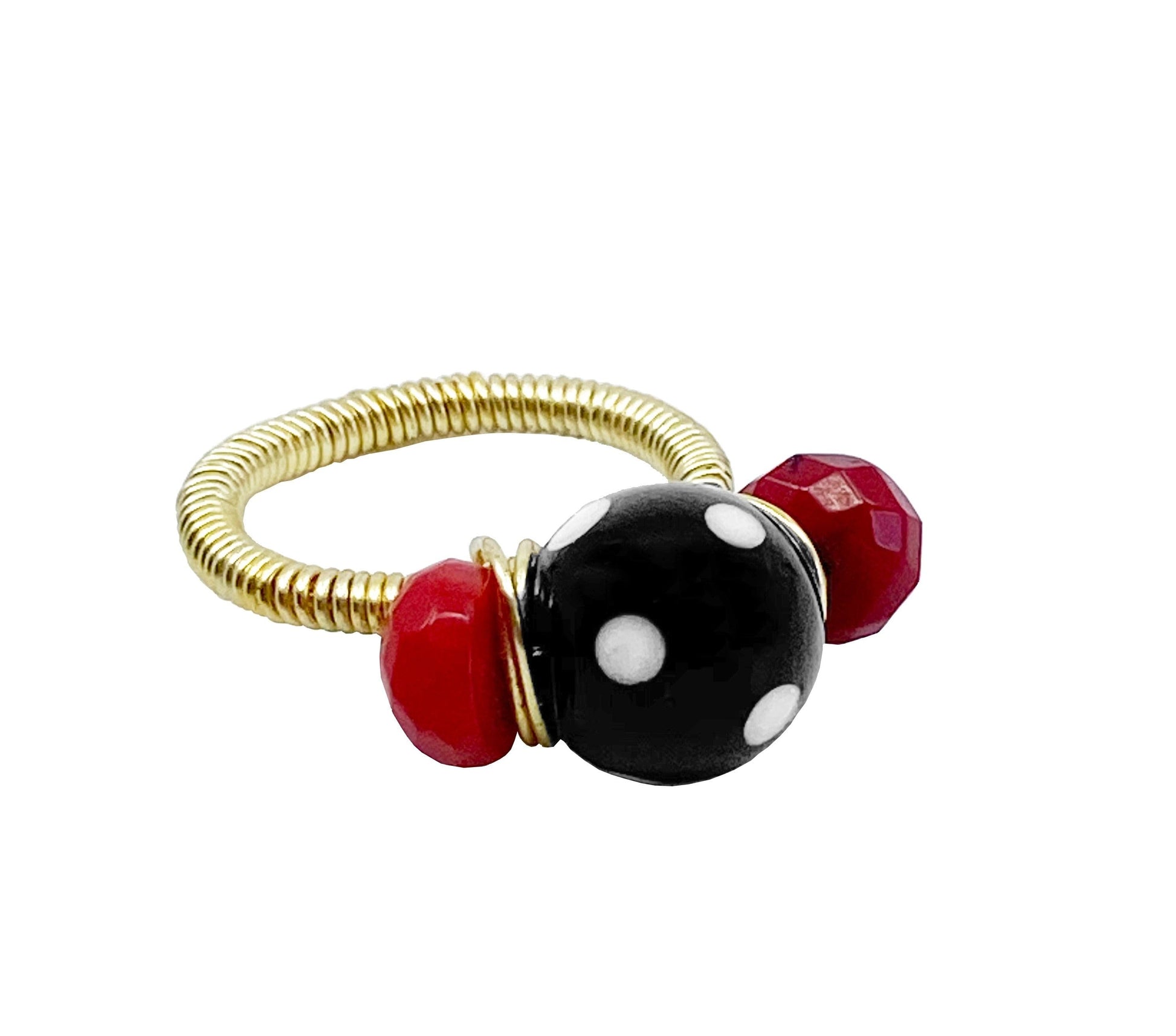 Crafted with high-quality gold-plated wire, the ring adds a bold pop of color to any look, making it an ideal accessory for any occasion. Whether you're looking to treat yourself or find the perfect gift for a special woman in your life, the Monte Trigo Ring is a meaningful and stylish addition to any jewelry collection.