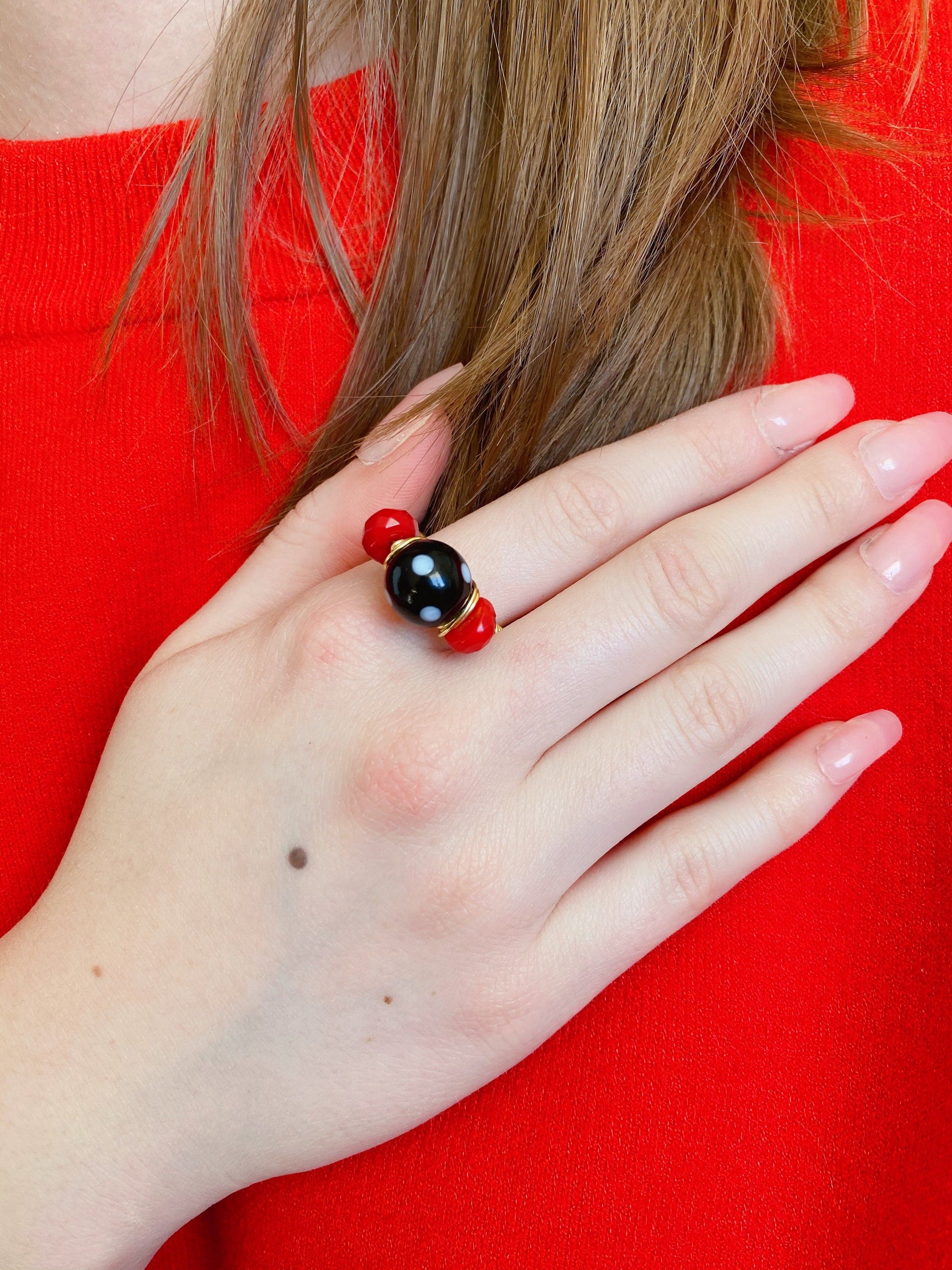 The Monte Trigo Ring is a stunning piece that combines vibrant color with meaningful symbolism. Featuring two red beads and a central Conta Di Ojo bead, this ring draws inspiration from Cape Verdean culture, where the Conta Di Ojo is believed to ward off evil spirits and bring protection.