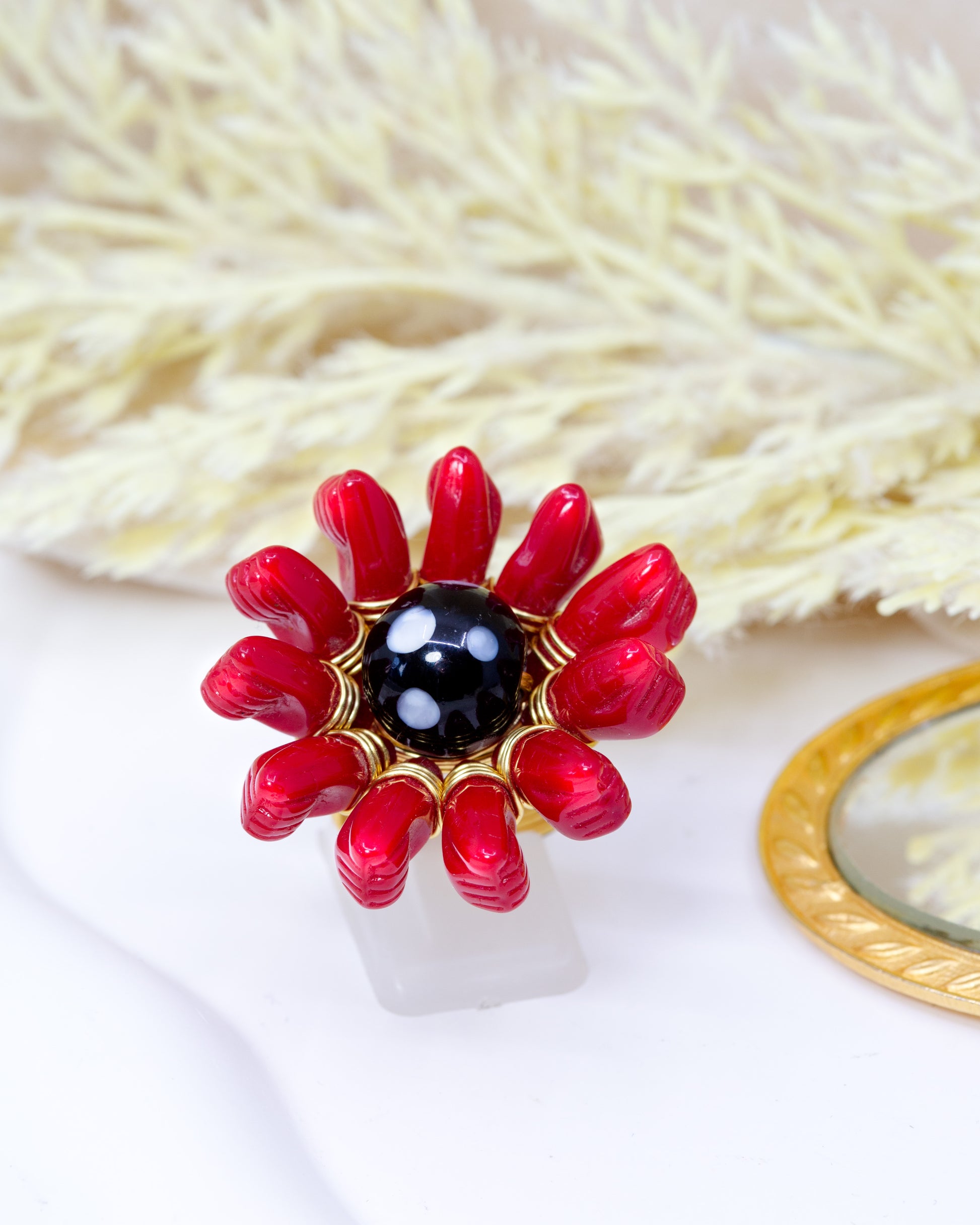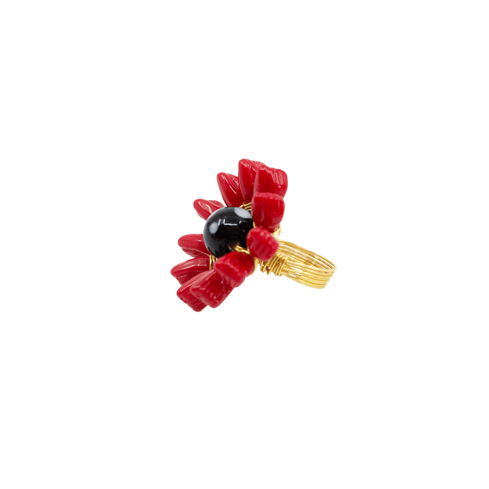 "Poderosa," meaning powerful in Spanish, symbolizes the strength of women—often unseen, yet always present. The Poderosa Ring is a stunning representation of that inner power. Crafted with red jewels and a striking black Conta Di Ojo bead, this ring exudes confidence and bold energy.