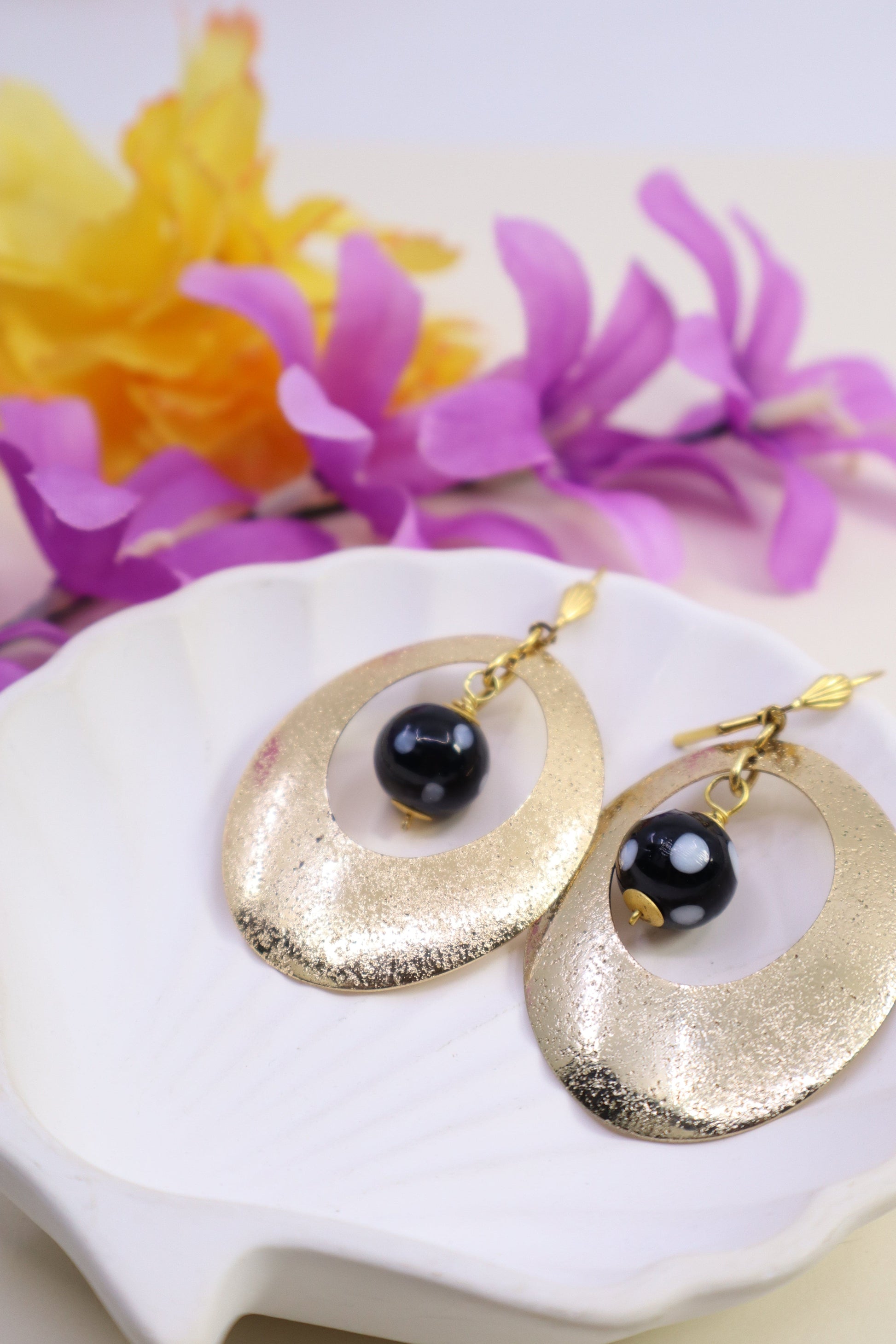 - Bold gold hoops with symbolic Conta Di Ojo bead (Evil Eye)