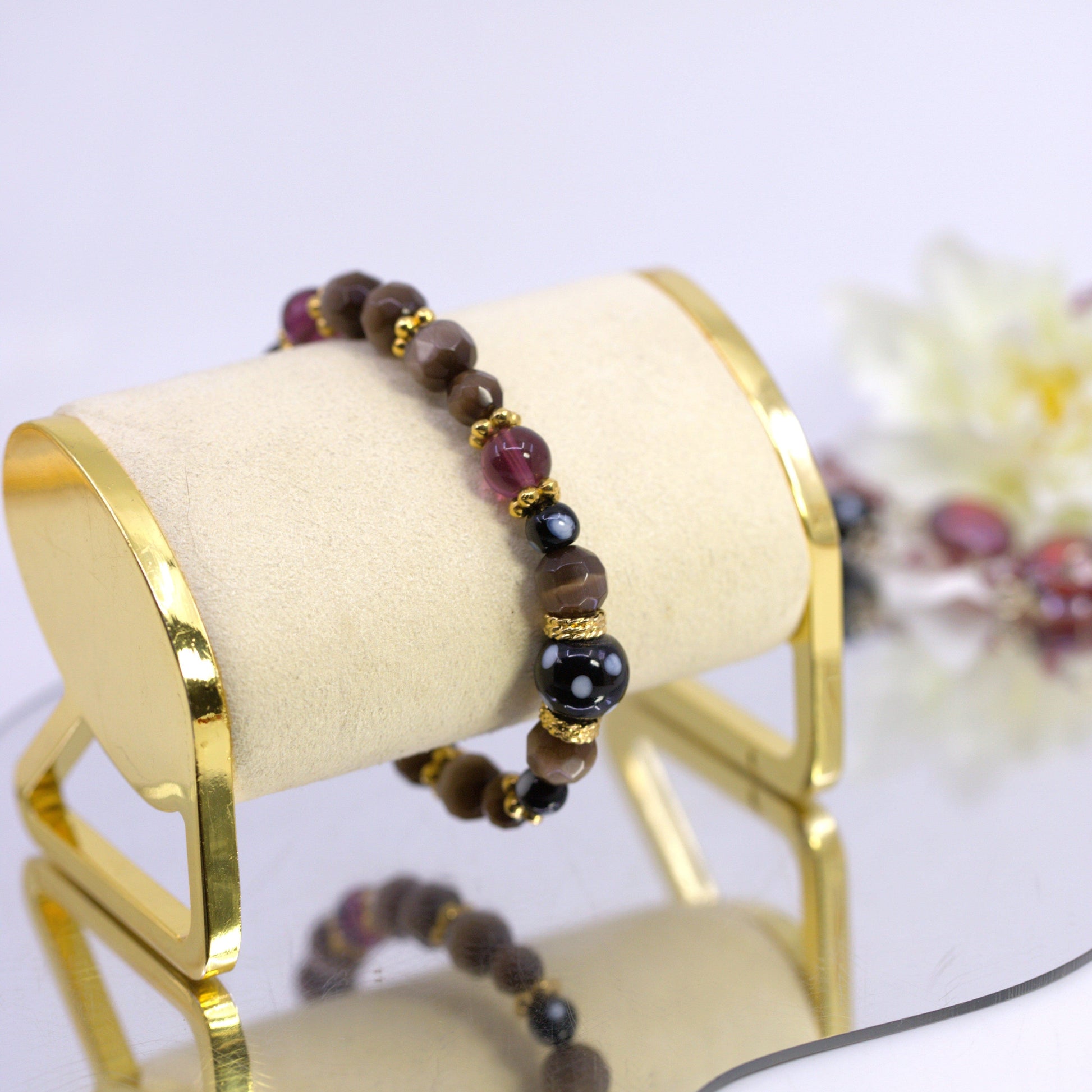 Add a touch of elegance and depth to your everyday style with the Vinho Bracelet. Handcrafted in New York by Alzerina Gomes, this stunning gold-plated bracelet features a refined mix of purple and brown Austrian crystals, designed to evoke both warmth and sophistication.