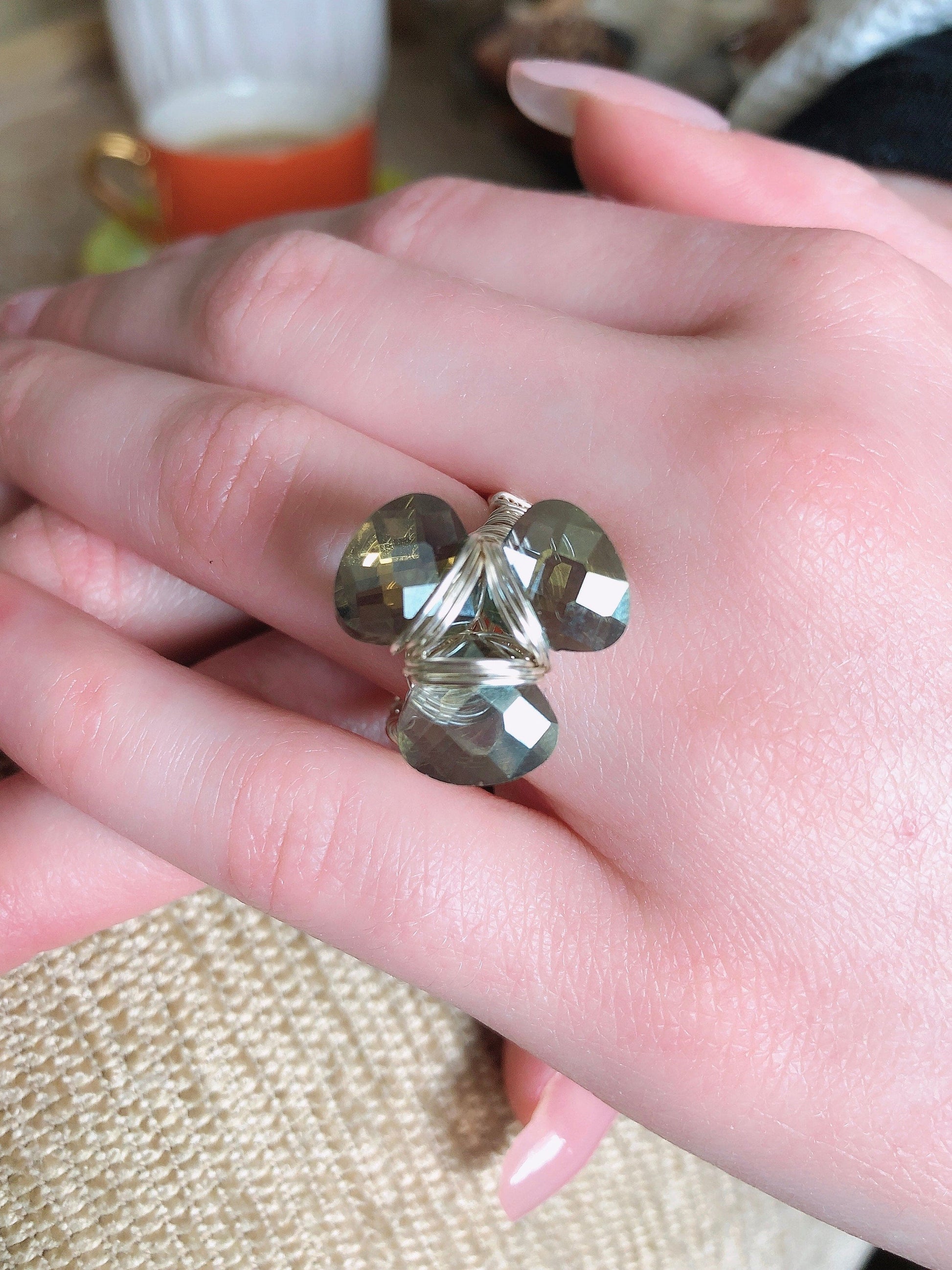 The Serena Handcrafted Ring features stunning crystal beads in three vibrant colors, creating a captivating and versatile design. Crafted with silver-plated wire, this ring is not only beautiful but also durable. Its unique design makes it easy to layer with other rings, allowing you to create a personalized and stylish look.